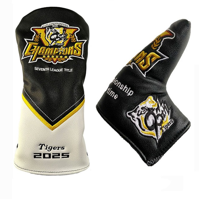 阪神タイガースグッズ 球団承認 2025 リーグ優勝記念 ゴルフ ヘッドカバー ドライバー・マレット型パターセット売りです。セット ★25LV-DW1PIN1☆高級感漂う合皮レザー使用 直刺繍 GOLF PGA
